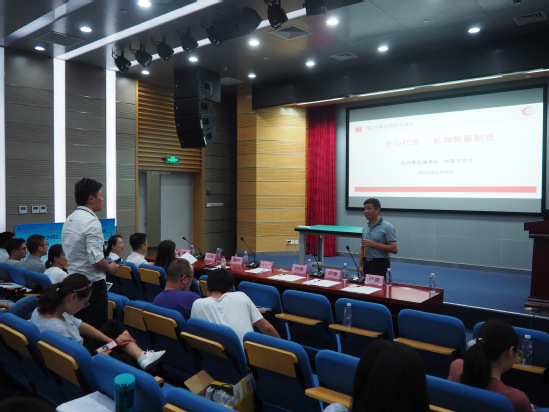 決賽之前,林善平先生給學生們作了題為“匠心打造,虹潤智能制造”的講座,林先生圍繞虹潤集團傳承的“工匠精神”和“傳統文化”,向學生們講述了虹潤如何通過不斷尋求發展道路、不斷發現問題解決問題,從“中國最好”走向“世界最好”的過程。講座后同學們就科技創新、大學生創業等感興趣的方面向林先生提問,林先生一一做了耐心解答,現場氣氛活躍。