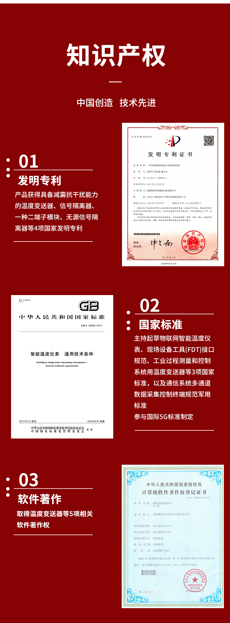 虹潤公司是專業(yè)生產(chǎn)溫度變送器的國家專精特新“小巨人”企業(yè)。生產(chǎn)的溫度變送器,具有采用磁隔離技術(shù),配套編程器可修改參數(shù),抗干擾能力強(qiáng),穩(wěn)定性好,帶RS485或HART通訊等特點(diǎn)。該產(chǎn)品不僅通過HART基金會認(rèn)證、德國萊茵 CE 認(rèn)證與 SIL 功能安全認(rèn)證,還獲得具備減震抗干擾能力的溫度變送器、信號隔離器、一種二端子模塊、無源信號隔離器等4項(xiàng)國家發(fā)明專利,主持起草物聯(lián)網(wǎng)智能溫度儀表、現(xiàn)場設(shè)備工具(FDT)接口規(guī)范、工業(yè)過程測量和控制系統(tǒng)用溫度變送器等3項(xiàng)國家標(biāo)準(zhǔn),以及通信系統(tǒng)多通道數(shù)據(jù)采集控制終端規(guī)范軍用標(biāo)準(zhǔn),參與國際5G標(biāo)準(zhǔn)制定,取得溫度變送器等5項(xiàng)相關(guān)軟件著作權(quán)。產(chǎn)品廣泛應(yīng)用于石油、電力、化工,冶金、制藥、紡織、橡膠制造等工業(yè)領(lǐng)域現(xiàn)場自動化測溫過程。