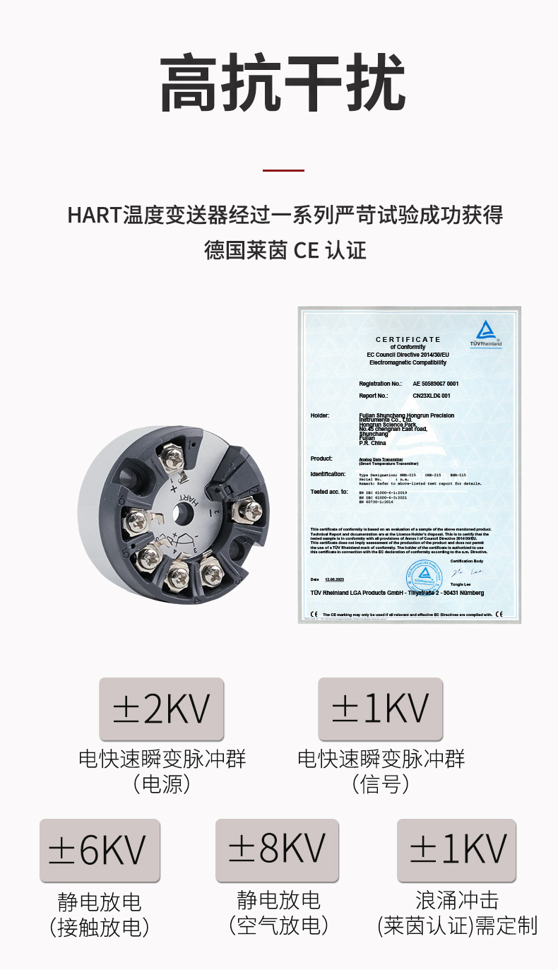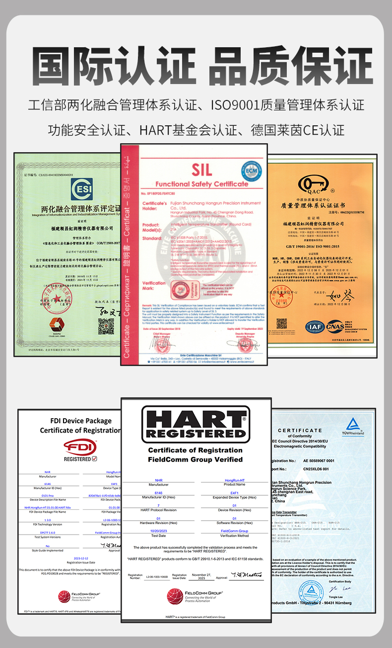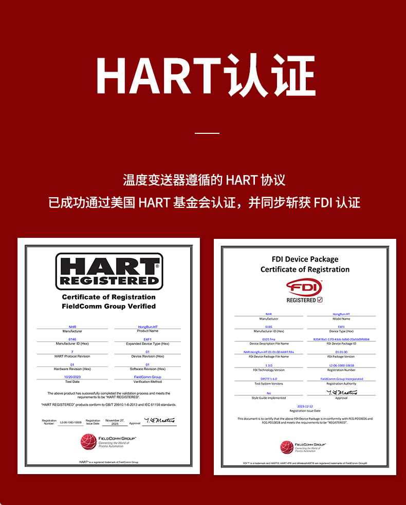 虹潤公司是專業(yè)生產(chǎn)溫度變送器的國家專精特新“小巨人”企業(yè)。生產(chǎn)的智能溫度變送器,具有適配各類溫度傳感器,精度高,通過編程線修改輸入信號(hào)類型及量程,高抗干擾,HART或485通訊等特點(diǎn)。該產(chǎn)品不僅通過HART基金會(huì)認(rèn)證、德國萊茵 CE 認(rèn)證與 SIL 功能安全認(rèn)證,還獲得具備減震抗干擾能力的溫度變送器、信號(hào)隔離器、一種二端子模塊、無源信號(hào)隔離器等4項(xiàng)國家發(fā)明專利,主持起草物聯(lián)網(wǎng)智能溫度儀表、現(xiàn)場設(shè)備工具(FDT)接口規(guī)范、工業(yè)過程測量和控制系統(tǒng)用溫度變送器等3項(xiàng)國家標(biāo)準(zhǔn),以及通信系統(tǒng)多通道數(shù)據(jù)采集控制終端規(guī)范軍用標(biāo)準(zhǔn),參與國際5G標(biāo)準(zhǔn)制定,取得HART溫度變送器、智能溫度變送器等3項(xiàng)相關(guān)軟件著作權(quán)。產(chǎn)品廣泛應(yīng)用于石油、化工、電力、冶金、制藥、食品、水處理等各種工業(yè)領(lǐng)域。。