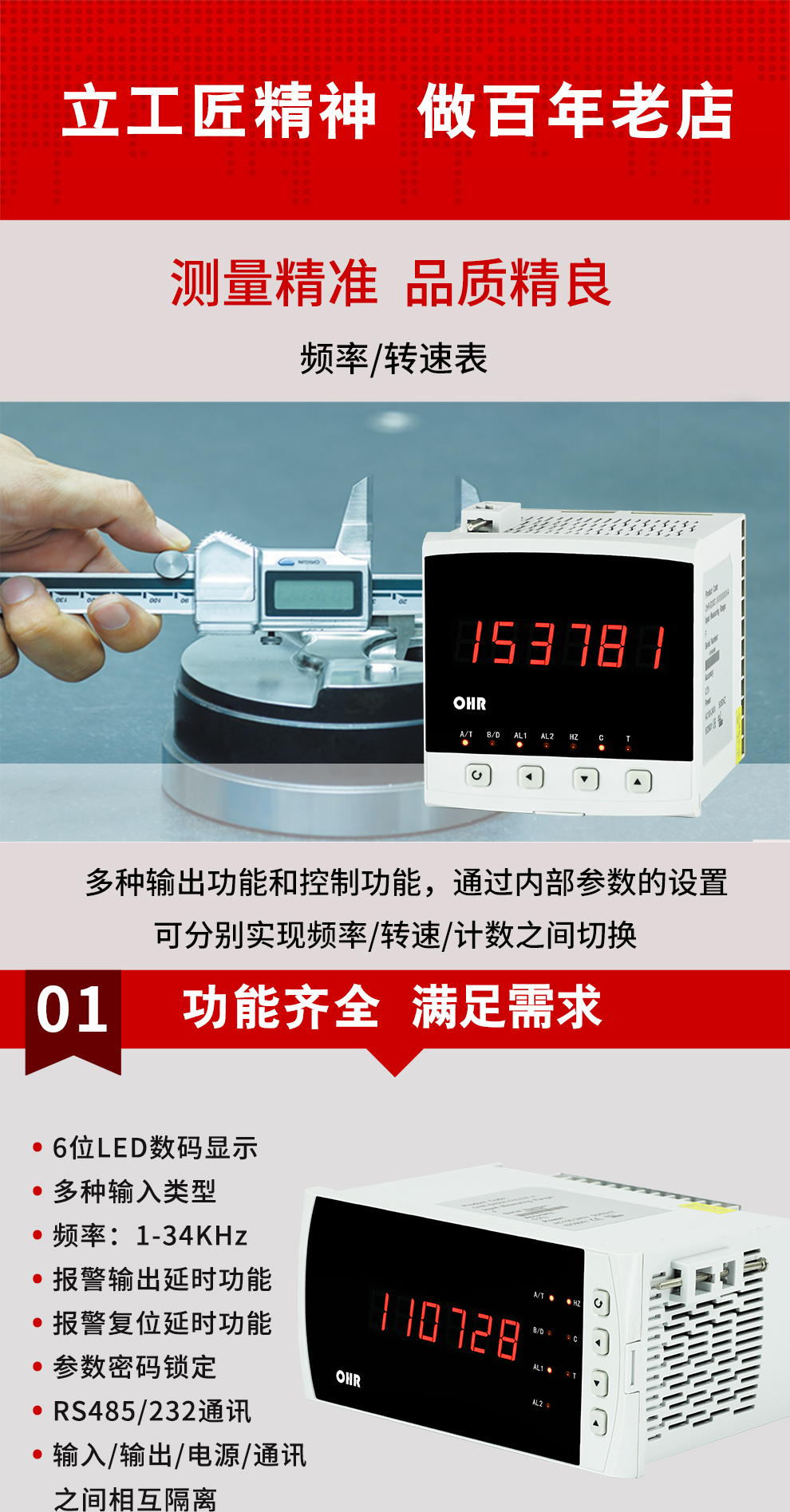 虹潤公司是專業生產頻率表的國家專精特新“小巨人”企業。生產的頻率/轉速表,具有可實現頻率、轉速與計數功能的切換,報警繼電器輸出,變送輸出,RS485通訊等特點。產品獲得基于儀表殼體、一種儀表電源等2項國家發明專利,主持起草流程工業中電氣/儀表和控制系統的試車國家標準,通信系統多通道數據采集控制終端規范軍用標準,以及現場設備集成等5項智能制造國家標準。參與國際5G標準制定,取得頻率轉速儀表等2項相關軟件著作權。產品廣泛應用于電力系統、機械制造、汽車工業、航空航天、船舶海事、冶金礦山等行業的頻率與轉速參數監測。